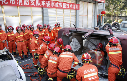 (吴从昊)为全面提升攀枝花市消防部队车辆事故救援技术水平和处置能力,2月16日,攀枝花市公安消防支队组织官兵在金沙大道中队开展车辆事故救援技术培训。