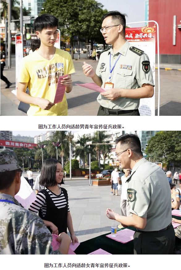 7月27日,东区征兵办在市中心文化广场开展2017年征兵宣传活动,向广大市民宣传征兵政策,提供政策咨询,解答群众关心的国防建设等相关问题。