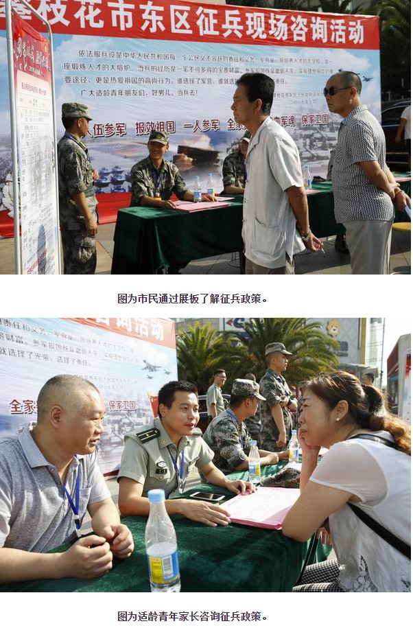 7月27日,东区征兵办在市中心文化广场开展2017年征兵宣传活动,向广大市民宣传征兵政策,提供政策咨询,解答群众关心的国防建设等相关问题。